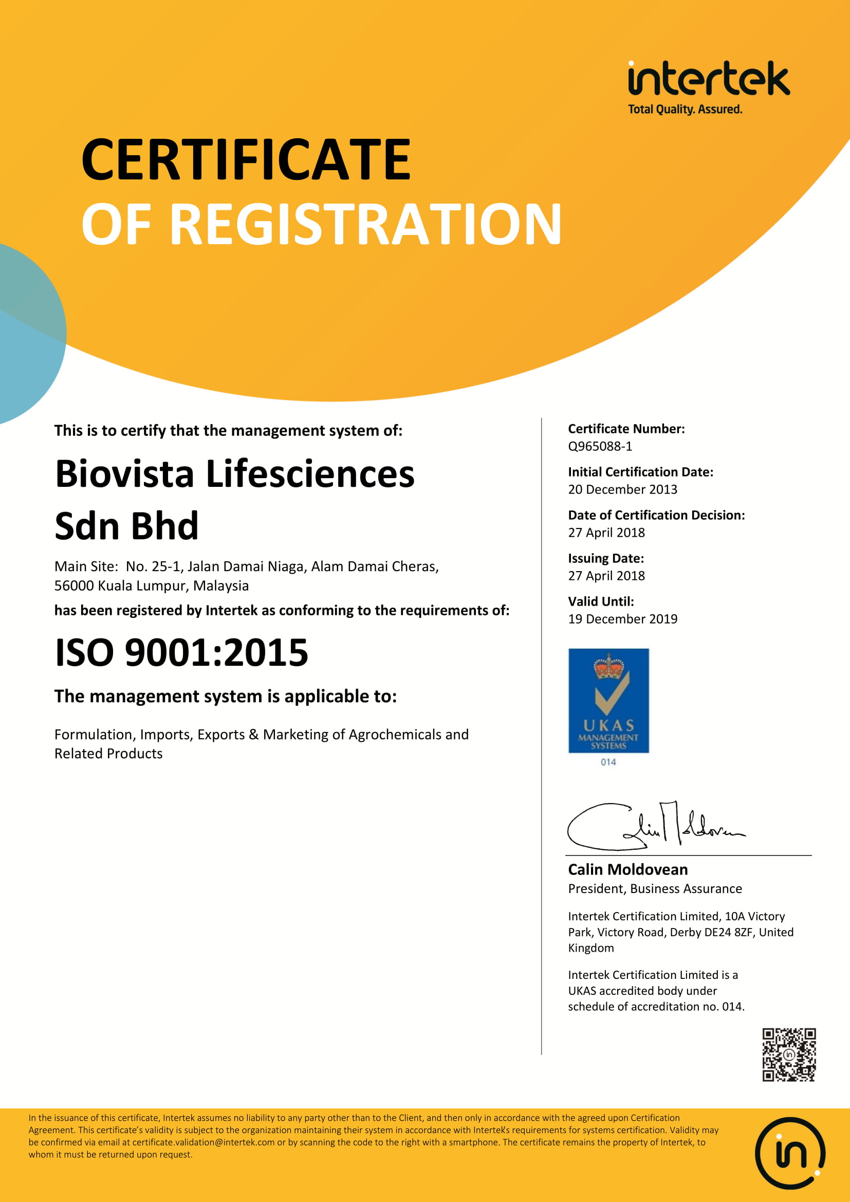 ISO Certificate of Registration (ISO 9001:2015)